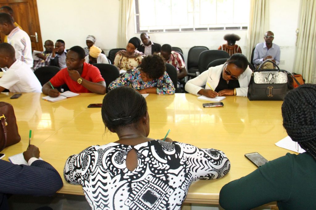 Sehemu ya waandishi wa habari pamoja watumishi wa wizara hiyo wakifatilia hotuba ya Waziri wa Kilimo Mhe.Japhet Hasunga wakati akitoa taarifa kwa umma kuhusu tishio la kuvamiwa na Nzige wa jangwani (Desert Locust) msimu wa 2019/2020
