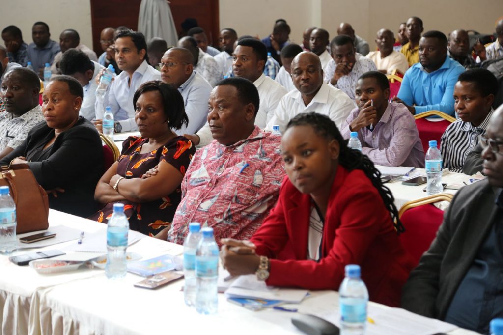 Sehemu ya washiriki wakifatilia hotuba ya Waziri wa Nishati, Dk. Medard Kalemani,alipokuwa akizungumza na wakandarasi wanaotekeleza mradi wa REA awamu ya tatu, watendaji wa REA pamoja na Shirika la Usambazaji Umeme Tanzania (TANESCO),kwa ajili ya kujadili utekelezaji wa usambazaji umeme vijijini kikao hicho kimefanyika jijini Dodoma leo.