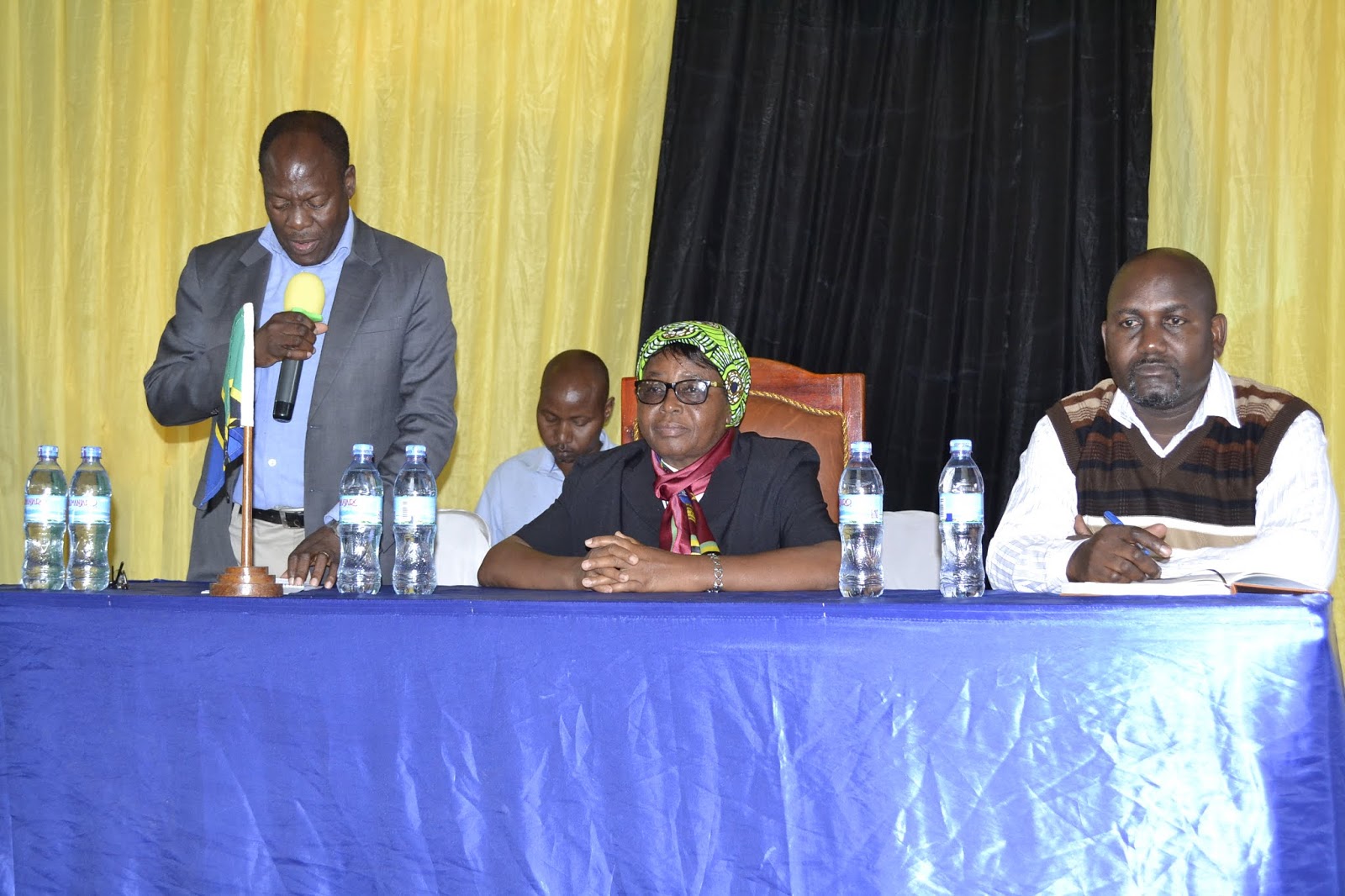 (mwenye skafu) kuwahutubia wataalam