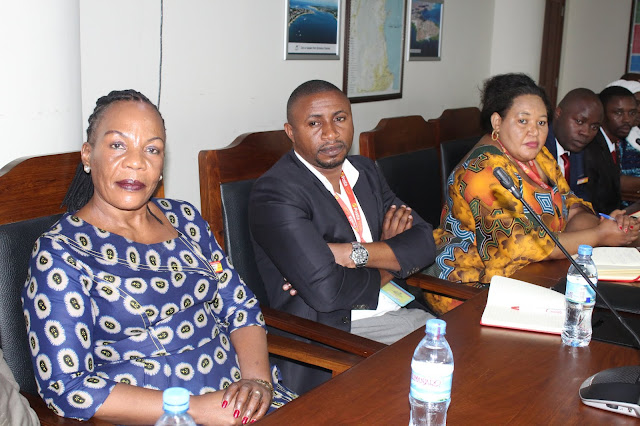 Baadhi ya wajumbe wa Menejimenti ya Shirika la Posta wakimsikiliza Waziri alipokuwa akizungumza.