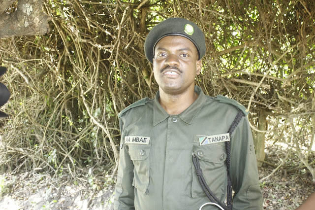| Afisa Utalii wa Hifadhi ya Taifa ya Saadan Athuman Mbae katikati akiwa na wageni kutoka mataifa mbalimbali waliotembelea hifadhi hiyo |