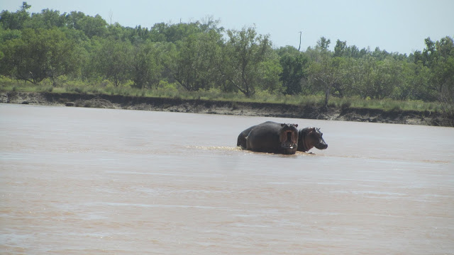 Wanyama aina ya Viboko wakiwa kwenye maji ndani ya Mto Wami ambao umepita kwenye hifadhi hiyo ya Taifa ya Saadan kama wanavyoonekana