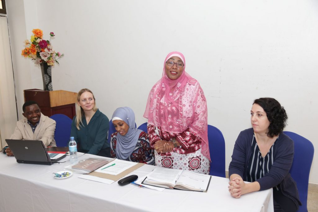 Kaimu Katibu Mtendaji wa THBUB akiongea katika kikao kazi kilichofanyika mkoani Morogoro kuanzia Februari 3 – 4, 2020 kwa lengo la kuandaa muongozo utakaotumika kufanya ufuatiliaji na ukaguzi wa Magereza na maeneo mengine walipozuiliwa watu. Kulia ni Kalliopi Kambanella, Mwanasheria kutoka Dignity. Wa kwanza kushoto ni Mkurugunzi kutoka THBUB, Alexander S. Hassan, wa pili kushoto ni Una Marquards-Busk, Meneja Mradi kutoka DIGNITY na wa tatu ni Kamishna Dkt, Fatuma Rashid Khalfan.