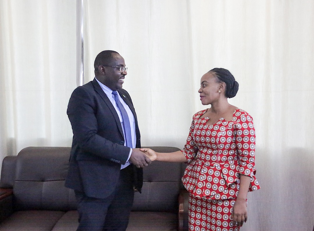 Katibu Mkuu wa Wizara ya Habari, Utamaduni, Sanaa na Michezo na Msemaji mkuu wa Serikali Dkt. Hassan Abbasi akisalimiana na Naibu Waziri wa Habari, Utamaduni, Sanaa na Michezo Juliana Shonza, walipokutana leo Jijini Dodoma.