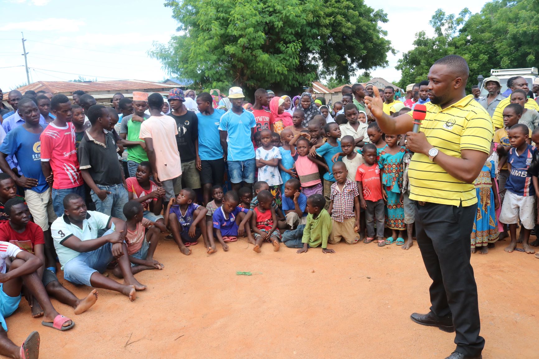 Afisa Forodha TRA Mtwara, Salvatory Chami akitoa elimu kwa wananchi wa kijiji cha Kitaya wilaya ya Mtwara kuhusu faida za kutumia vituo vya forodha halali kupitisha bidhaa kutoka nje ya nchi
