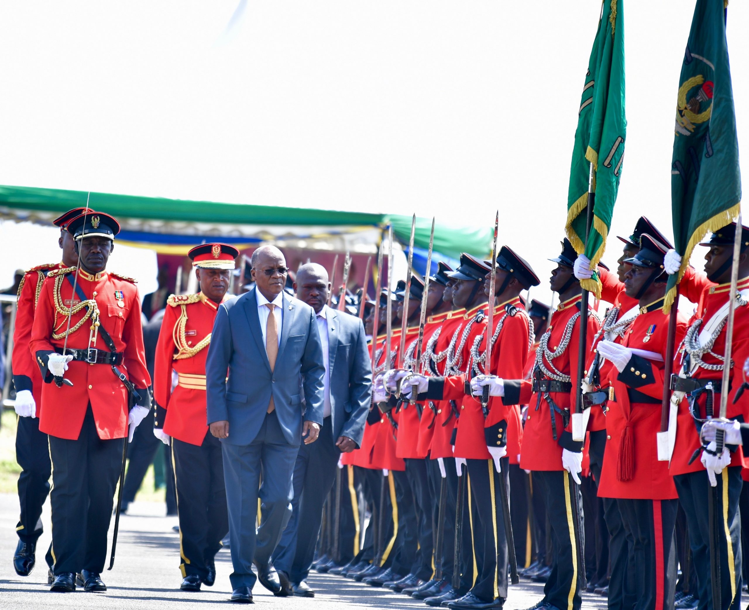 Amiri Jeshi Mkuu, Rais wa Jamhuri ya Muungano wa Tanzania, Mhe, Dkt. John Pombe Magufuli katika Hafla ya kutunuku kamisheni kwa Maafisa Wanafunzi 128 wa Jeshi la Wananchi la Tanzania (JWTZ) iliyofanyika Ikulu Jijini