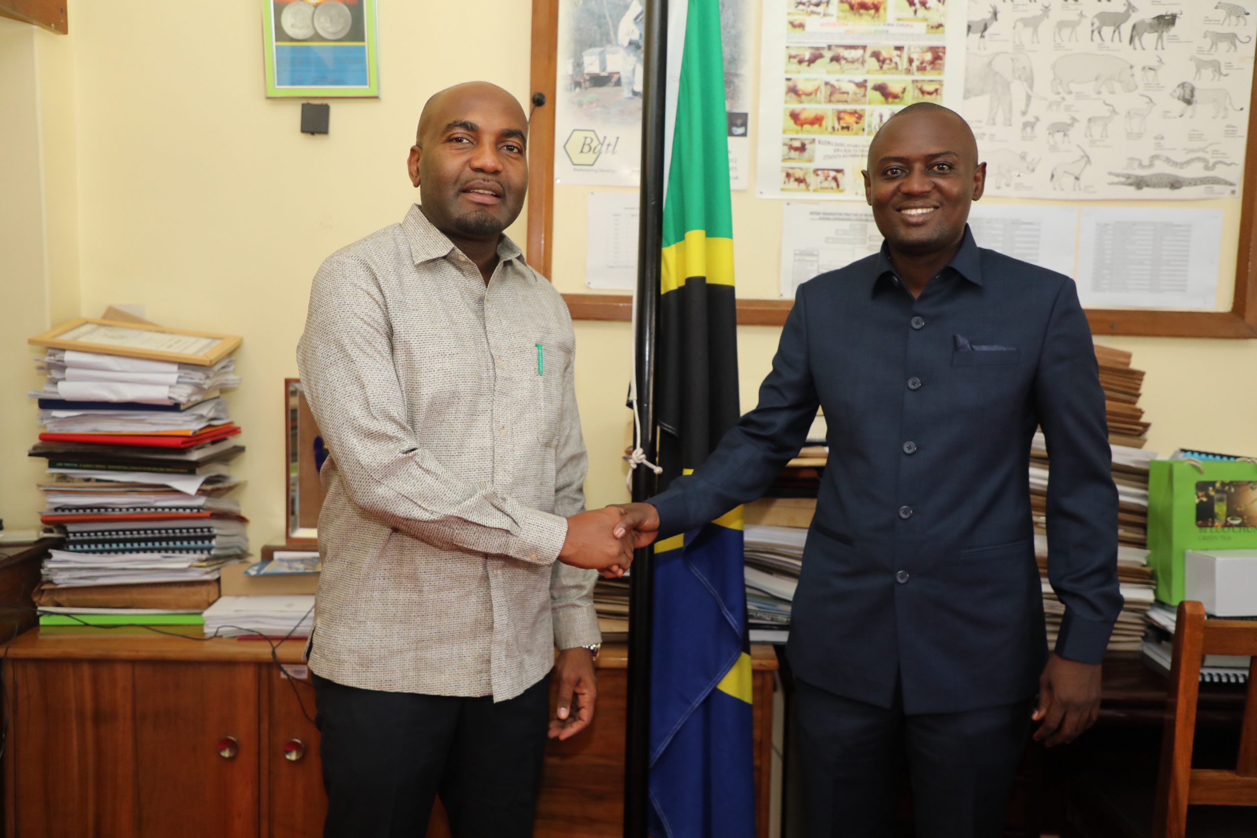 Naibu Waziri wa Mambo ya Ndani ya Nchi, Mhandisi Hamad Masauni akiwa katika picha ya pamoja na Mkuu wa Mkoa wa Arusha, Mrisho Gambo(kulia),baada ya kumaliza mazungumzo yaliyohusu Ulinzi na Usalama. Naibu Waziri yuko jijini Arusha kwa ziara ya kikazi.Picha na Wizara ya Mambo ya Ndani ya Nchi