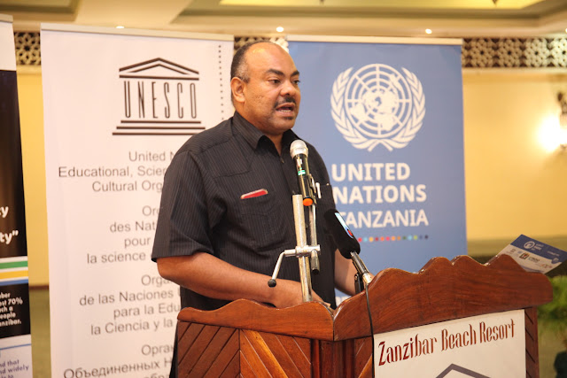 Mkuu wa Ofisi na Mwakilishi wa Shirikila la Umoja wa Mataifa la Elimu, Sayansi na Utamaduni (UNESCO), Tirso Dos Santos akitoa salamu za Unesco wakati wa sherehe za maadhimisho za siku ya Radio Duniani yenye kauli mbiu “Radio na Ujumuishaji” yaliyofanyika visiwani Zanzibar katika hoteli ya Zanzibar Beach Resort.