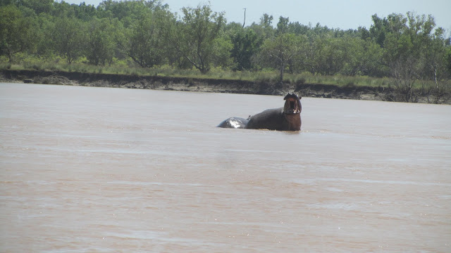 Mnyama aina ya Kiboko akiwa kwenye maji ndani ya Mto Wami ambao unapita kwenye Hifadhi ya Taifa ya Saadani kama walivyokutwa