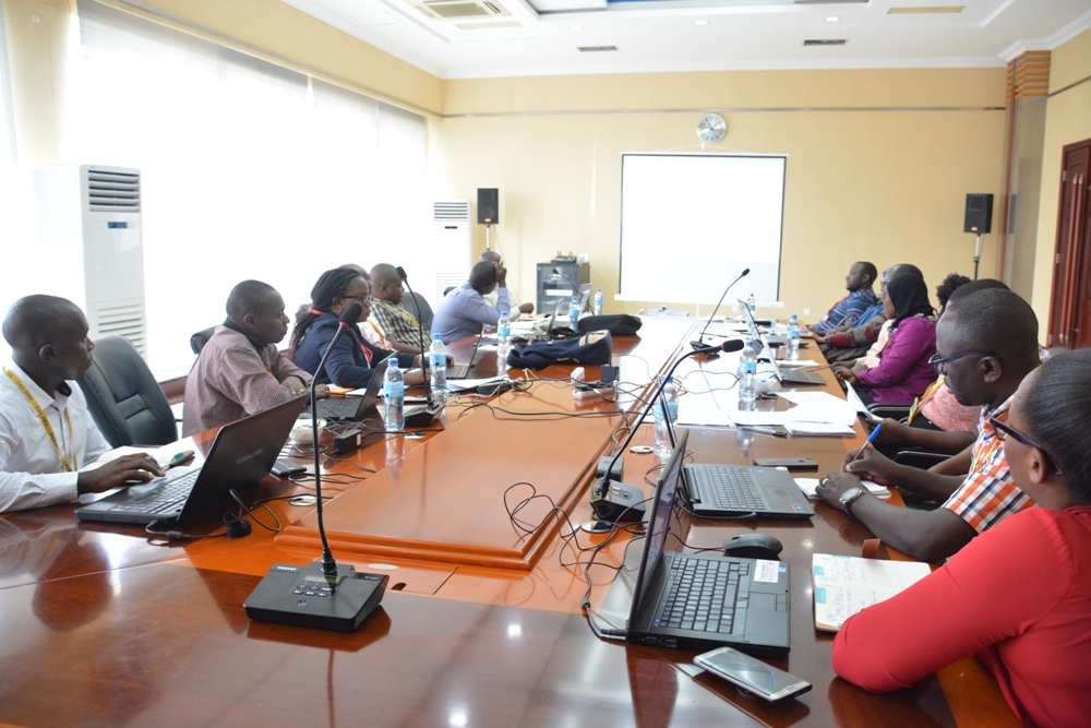 Kaimu Mkuu wa Kitengo cha Ukaguzi wa Ndani cha Mamlaka ya Viwanja vya Ndege Tanzania (TAA), Irene Sikumbili (wa tano kulia) akimsikiliza mwendeshaji wa mafunzo ya mfumo wa manunuzi kwa njia ya Mtandao (TANePs), yanayoendeshwa na Kenneth Nnembuka kutoka Mamlaka ya Udhibiti wa Manunuzi ya Umma (PPRA). Mafunzo hayo yanafanyika kwenye ukumbi wa Mikutano wa Watu Mashuhuri wa Kiwanja cha Ndege cha Kimataifa cha Juluius Nyerere (JNIA_VIP).