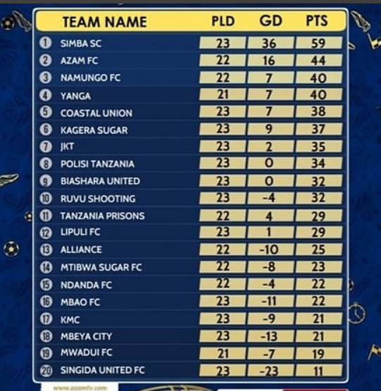 Tazama hapo chini msimamo wa Ligi Kuu Vodacom Tanzania bara.