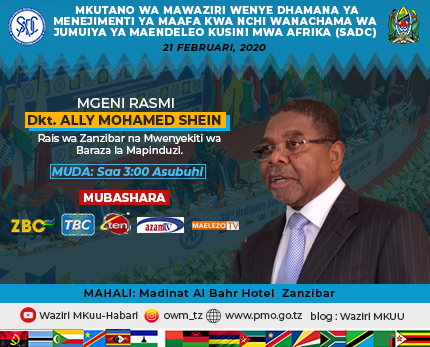 MchanganyikoMAWAZIRI WENYE DHAMANA YA MENEJIMENTI YA MAAFA KWA NCHI ZA SADC KUKUTANA ZANZIBAR Last updated: 2020/02/20 at 8:17 AM joseph 6 years ago Share SHARE joseph February 20, 2020 February 20, 2020 Share this Article Facebook Twitter Email Print Previous Article MAFANIKIO YA SERIKALI YA AWAMU YA TANO KATIKA SEKTA YA MAENDELEO YA JAMII Next Article DK.SHEIN AMEKUTANA NA UONGOZI WA WIZARA YA FEDHA NA MIPANGO