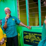 Waziri Mkuu, Kassim Majaliwa akitia saini kitabu cha maombolezo ya kifo cha Mathew Champanda ambaye ni kaka mkubwa wa Katibu Mkuu wa Shirikisho la Mpira wa Miguu Tanzania (TFF), Kidao Wilfred (kushoto), nyumbani kwa marehemu Mwanga mjini Kigoma, Februari 22, 2020. Champanda alifariki dunia Februari 19, 2020 na anatarajiwa kuzikwa leo. (Picha na Ofisi ya Waziri Mkuu)