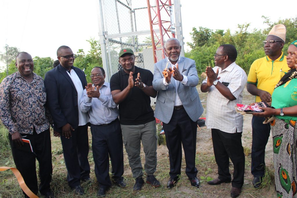 Naibu Waziri wa Uchukuzi na Mawasiliano, Mhandisi Atashasta Nditiye (wa nne kulia) akifurahi baada ya kuzindua mnara wa mawasiliano wa kata ya Mkongo, Rufiji mkoani Pwani. Wa nne kushoto kwake ni Mbunge wa Rufiji, Mohammed Mchengerwa