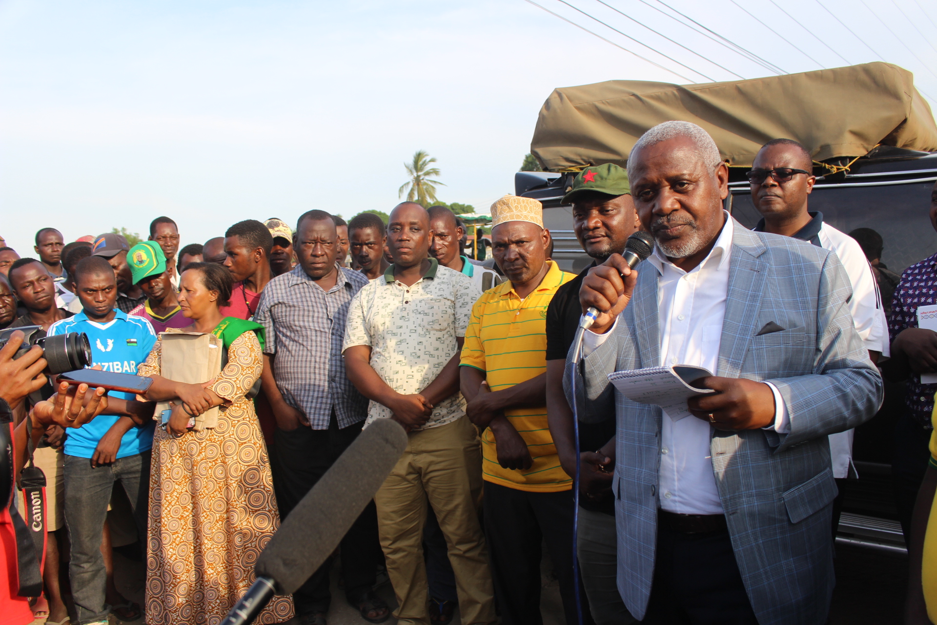 Naibu Waziri wa Uchukuzi na Mawasiliano, Mhandisi Atashasta Nditiye akizungumza na wananchi wa Ikwiriri, walipomsimamisha njiani akielekea kuzindua mnara wa mawasiliano kata ya Mkongo wilayani Rufiji, Pwani. Wa kwanza kushoto kwake ni Mbunge wa jimbo hilo, Mohammed Mchengerwa na mwenye miwani nyuma yake ni Albert Richard, Mkuu wa Uendeshaji wa Mfuko wa Mawasiliano kwa Wote
