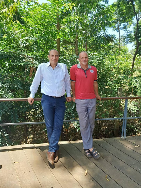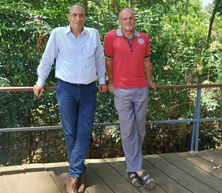 Essam Ghoneim (kushoto) raia mwenye asili ya Misri mfanyakazi wa Umoja wa Mataifa Nchini akiwa na rafiki yake baada ya kufika nchini Tanzania kwa ajili ya kutembelea vivutio vya utalii katika Mkoa wa Kilimanjaro na Arusha.