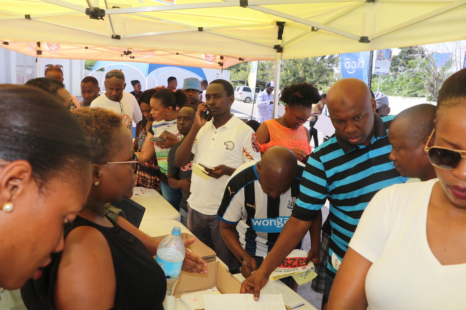 Wakazi wa Dar es Salaam wakichukua namba za kukimbilia kwa ajili yam bio za KM 42 za Kilimanjaro Premium Lager na Km 21 za Tigo na kujiandikisha kwa mbio za Km 5 za Grand Malt katika viwanja vya Mlimani City mwishoni mwa wiki. Zoezi hilo litahamia Arusha kesho Jumanne na Jumatano.