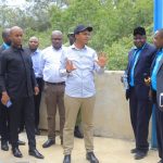 Naibu Waziri wa Nishati, akipata taarifa wa hali ya umeme ya Wilaya ya Liwale kutoka kwa Meneja Tanesco wa Wilaya ya Liwale Festo Nhembo wakati akiwa kwenye ziara ya kazi ya ukaguzi wa kazi ya usambazaji umeme.