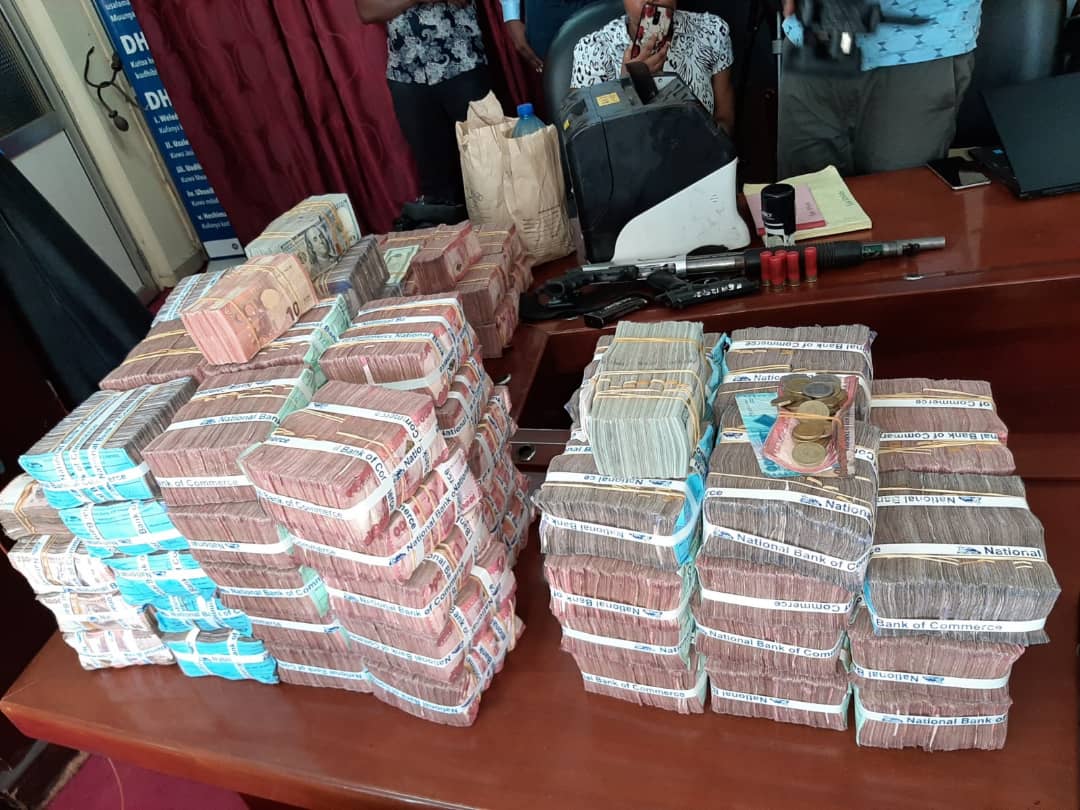 ” Aidha upelelezi uliendelea na Februari 24, 2020 mtuhumiwa Ibrahim Maunga alikamatwa na baada ya kupekuliwa alikutwa na Sh. 195,213,450,dola za Marekani 70,600, nyumba aliyonunua Kibaha yenye thamani ya Sh.milioni 30 pamoja na samani za ndani zenye thamani ya Sh.milioni 10 na kufanya jumla Jumla kuu ya mali na fedha ni Sh. 253,000,000.Jeshi la Polisi Kanda Maalum ya Dar es Salaam limefanikiwa kukamata watuhumiwa wote watatu pamoja na mtuhumiwa aliyewasaidia kukamilisha wizi huo,”amesema Mambosasa na kuongeza pia wanawashikilia askari Polisi tisa kwa kukiuka maadili ya kazi wakati wa ufutiliaji na upekuzi wa tukio hilo.