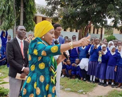 Mbunge wa Viti Maalum Mkoa wa Singida, Mhe. Aysharose Mattembe akizungumza na Wanafunzi wa darasa la sita na la saba wa Shule ya Msingi Sayuni.