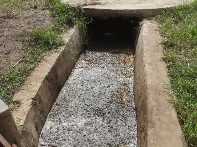 Mfereji wa eneo la machinjio unaotiririsha maji taka hadi kwenye makazi ya watu.