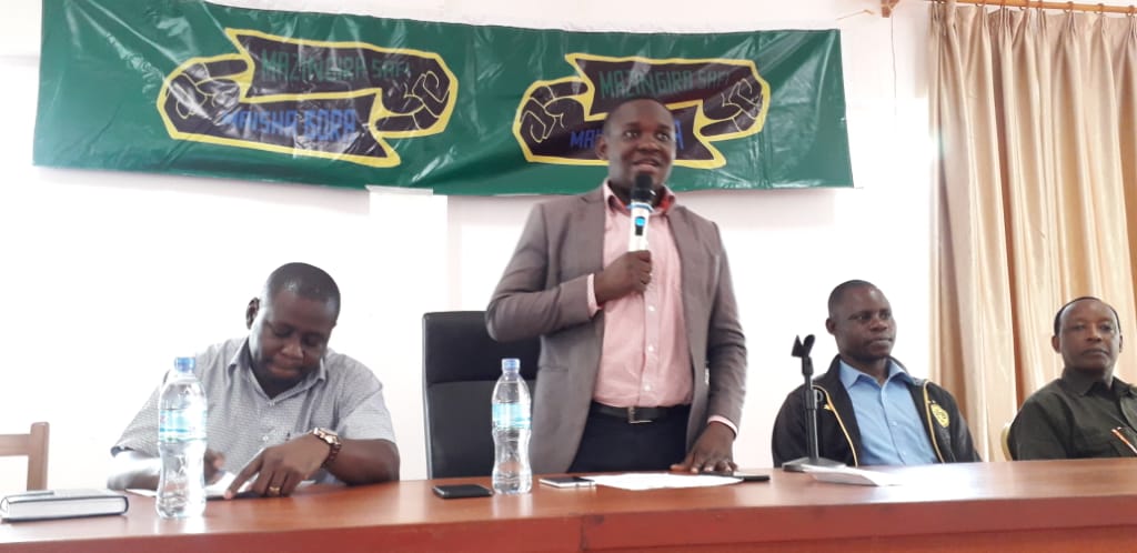 Katibu Tawala wa wilaya ya Arusha,David Mwakiposa akizungumza katika halfa hiyo ya upokeaji wa vifaa vya utunzaji wa mazingira vilivyotolewa na shirika la SNV(Happy Lazaro).