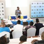 Katibu Mkuu wa Wizara ya Ujenzi, Uchukuzi na Mawasiliano, anayeshughulikia Sekta ya Ujenzi, Mbunifu Majengo, Elius Mwakalinga, akitoa maelekezo kwa Mhandisi Mshauri kutoka SMEC International (katikati) anayesimamia barabara ya Mbinga – Mbamba Bay (Km 66) kwa kiwango cha lami. Barabara hiyo imefika asilimia 49.6.