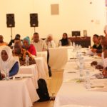 Waziri wa Maji Mhe.Prof.Makame Mbarawa akipata maelezo kutoka kwa Meneja wa Wakala wa Maji na Usafi wa Mazingira Vijijini (RUWASA) Mhandisi Christine Kessy Kuhusu utekelezaji wa mradi wa maji wa vijiji 5 unaofadhiliwa na DFID katika Halmshauri ya Arumeru.