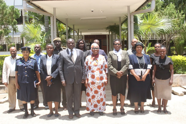 Mkurugenzi wa Mashtaka (DPP), Biswalo Mganga, Mkuu wa Mkoa wa Singida Dk Rehema Nchimbi (katikati, na wajumbe wa Jukwaa la Haki Jinai mkoa wa Singida, muda mfupi baada ya mkuu wa mkoa kulizindua rasmi.