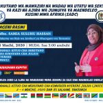 Waziri Mkuu, Kassim Majaliwa akimsaidia kubeba ndoo ya maji, Mariam Mgaza Hassan wakati alipozindua mradi wa maji wa Bokwa wilayani Kilindi, Machi 4, 2020. (Picha na Ofisi ya Waziri Mkuu)