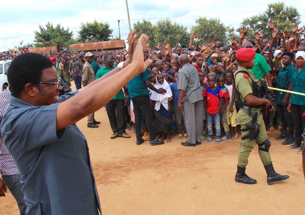 Waziri Mkuu, Kassim Majaliwa akiwapungia wananchi wakati alipowasili kwenye uwanja wa Shule ya Msingi Chanika mjini Handeni kuhutubia mkutano wa hadhara, Machi 3, 2020.