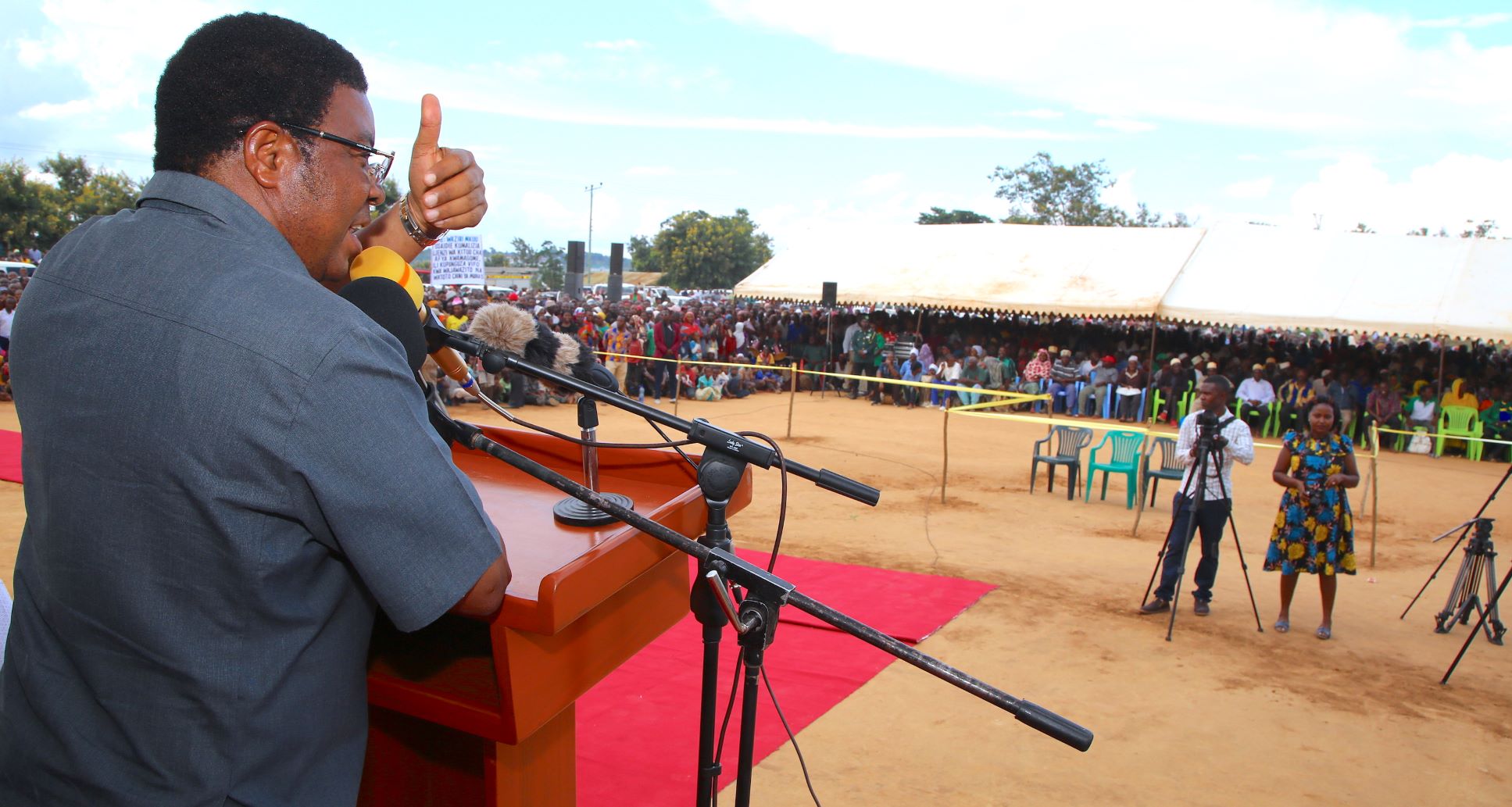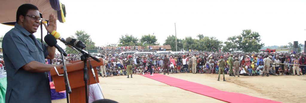Waziri Mkuu, Kassim Majaliwa akihutubia mkutano wa hadhara kwenye uwanja wa Shule ya Msingi ya Chanika mjini Handeni, Machi 3, 2020