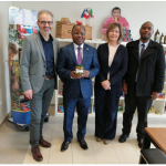 Vick Msima Meneja Msaidizi Idara ya Uhusiano wa Umma na Itifaki akimkaribisha Bw. Bernrad Dadi Mkurugenzi wa Mfumo wa Malipo wa Taifa Benki Kuu ya Tanzania (BoT) ili kutoa mada kwa waandishi wa habari kuhusu Kanzidata ya Kudumu ya Watoa Huduma wa Kifedha.