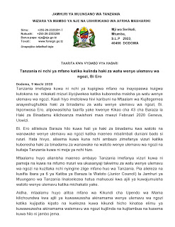 MchanganyikoTanzania ni nchi ya mfano katika kulinda haki za watu wenye ulemavu wa ngozi, Bi Ero Last updated: 2020/03/09 at 12:00 PM joseph 6 years ago Share SHARE joseph March 9, 2020 March 9, 2020 Share this Article Facebook Twitter Email Print Previous Article MAVUNDE AITAKA OSHA KUENDELEA KUJENGA UWEZO WA WATUMISHI WAKE Next Article LUKUVI AMALIZA RASMI ULAJI WA MAAFISA ARDHI