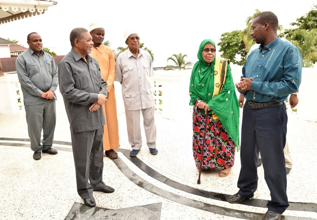 RAIS wa Zanzibar na Mwenyekiti wa Baraza la Mapinduzi Mhe. Dk. Ali Mohamed Shein, akiwa na Ujumbe wa Uongozi wa Taasisi ya Siti Bint Saad wakiwa nje ya ukumbi wakibadilishana mwazo baada ya kumaliza mazungumzo yao yaliofanyika katika ukumbi wa Ikulu Jijini Zanzibar leo,10-3-2020.(Picha na Ikulu)