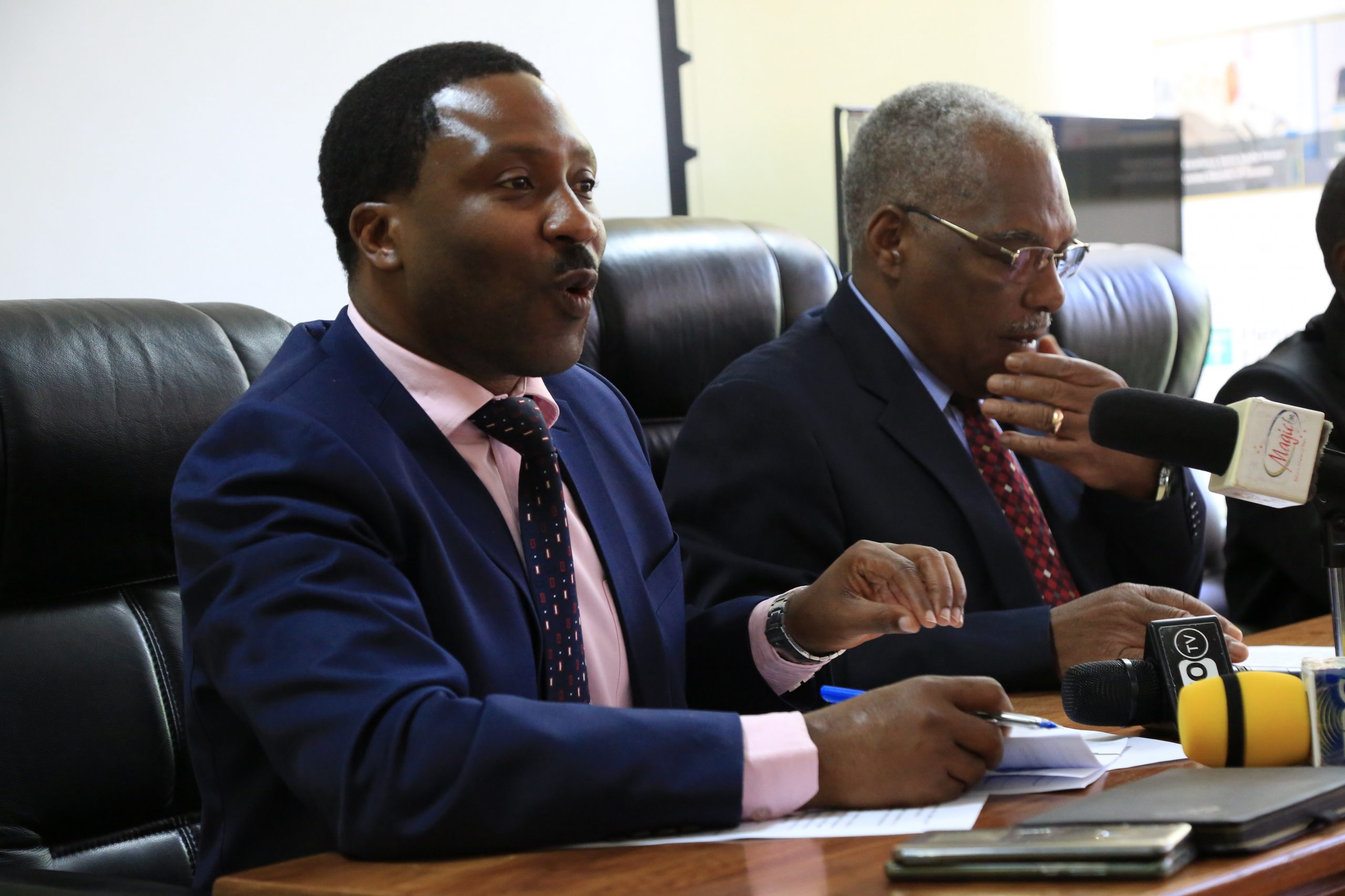 Katibu Mtendaji wa Tume ya Madini, Profesa Shukrani Manya (kushoto) akizungumza na waandishi wa habari hivi karibuni. Kulia ni Mwenyekiti wa Tume ya Madini, Profesa