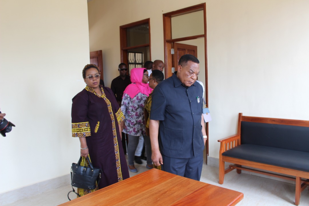 Mheshimiwa Balozi Dkt. Augustine Mahiga akikagua samani katika jengo la Mahakama ya Wilaya ya Longido jijini Arusha.
