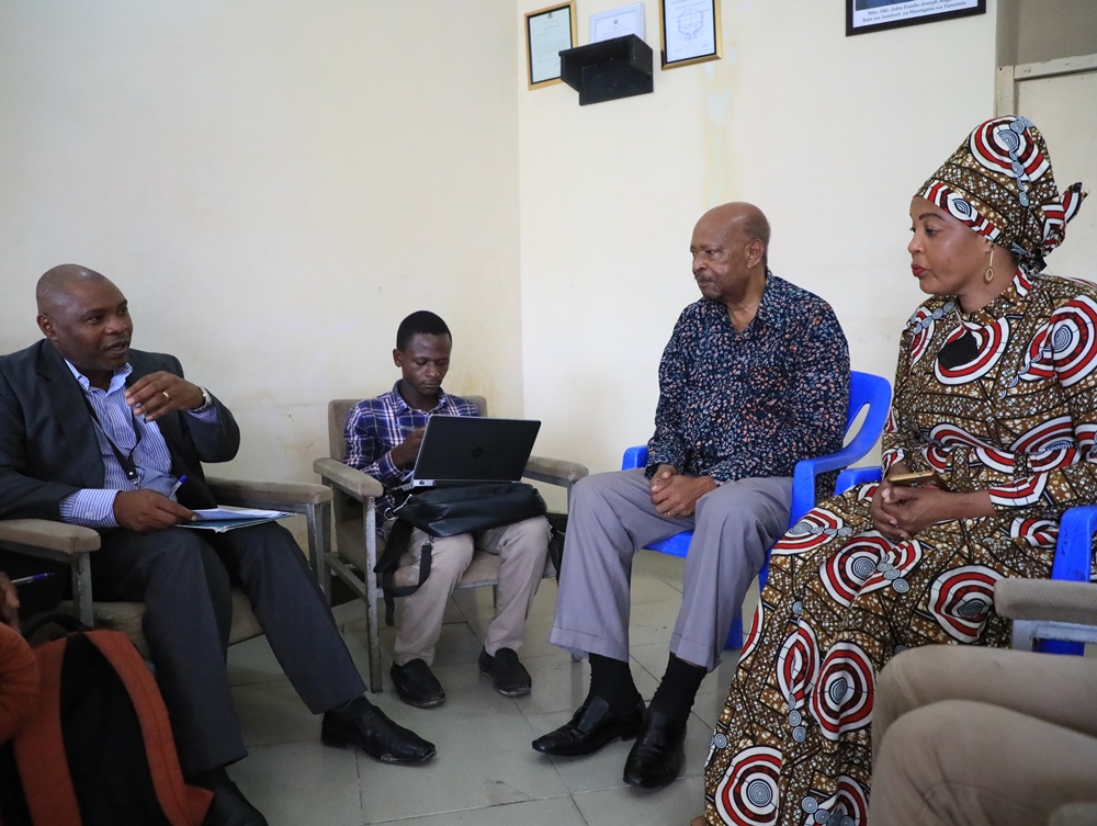 Msajili Msaidizi wa Vyama vya Siasa, Bw. Sisty Nyahoza akifafanua jambo mbele ya viongozi wa Kitaifa wa Chama cha United Democratic Party (UDP) wakati wa zoezi la uhakiki wa vyama vya siasa walipotembela Makao Makuu ya chama hicho leo jijini Dar es Salaam. Katikati ni Mwenyekiti wa UDP Taifa, John Momose Cheyo.