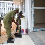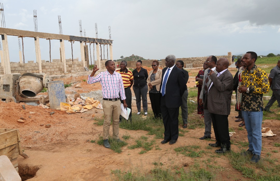 Spika wa Bunge, Mhe. Job Ndugai (katikati) akiongozana na Mkuu wa Mkoa wa Dodoma, Mhe. Dkt. Binilith Mahenge (kushoto) pale viongozi wa Mkoa wa Dodoma walipokagua na kujionea ujenzi wa Shule ya Wasichana ya Bunge ya kidato cha Tano na Sita iliyopo Kikombo Wilayani Chamwino Mkoani Dodoma. Wa pili kulia nyuma ni Katibu Tawala Mkoa wa Dodoma, Ndg.
