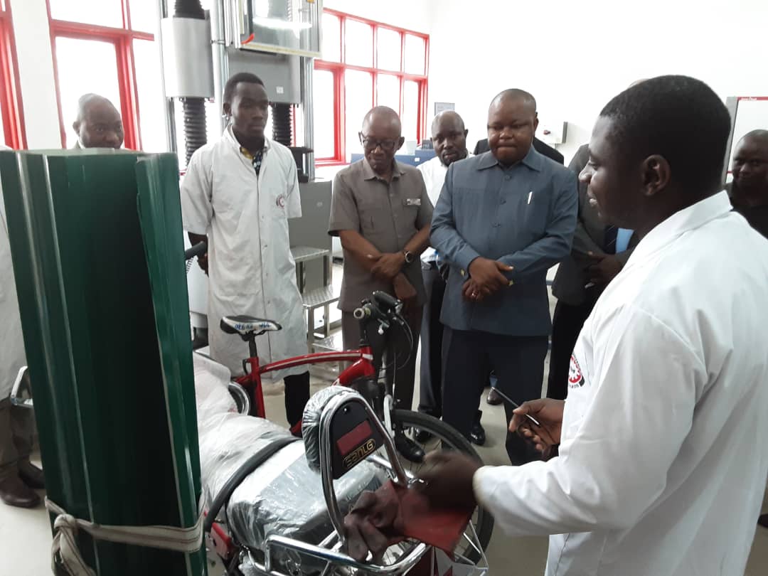 Katibu Mkuu wa Wizara ya Viwanda na Biashara Prof. Riziki Shemdoe ( wa pili kutoka kulia) akipatiwa maelezo na mtaalam wa TBS kuhusu upimaji wa bidhaa mbalimbali unaofanyika katika maabara ya uhandisi mitambo,kulia kwake ni Mkurugenzi Mkuu wa TBS Dkt Athuman Ngenya.