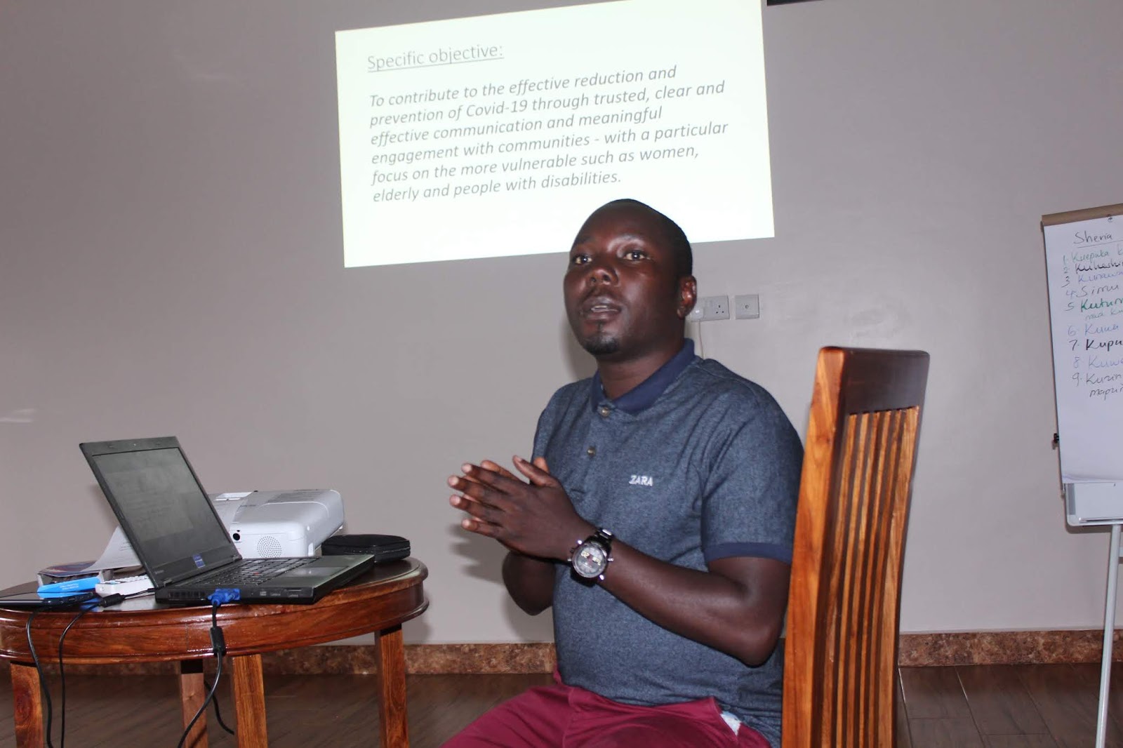 Daktari Giliad Zablon kutoka hospitali ya wilaya Hanang’Tumaini akiainisha baadhi ya dalili za Covid- 19 kwa washiriki wa mafunzo ya kujengewa uelewa yaliyoandaliwa na kuendeshwa na shirika la kimataifa la Oxfam nchini Tanzania