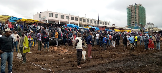 | Wafanyabiashara wakisubiria kuhakiki maeneo yao kabla ya ujenzi kuanza |
