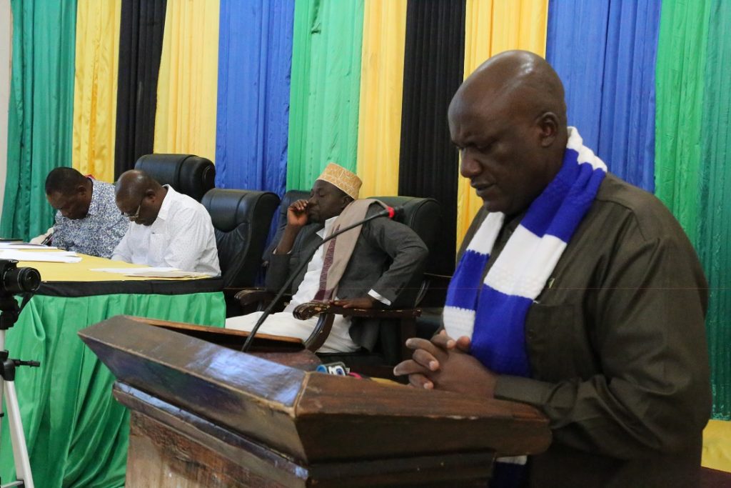 Katibu Tawala Mkoa wa Tabora Msalika Makungu akitoa maelezo kuhusu hatua mbalimbali zilikwishachukuliwa katika kujinga na ugonjwa wa covid -19 wakati wa maombi na dua maalumu Viongozi wa Dini na Serikali ya Mkoa wa Tabora kwa ajili ya kuuweka Mkoa wa Tabora ,Taifa na Dunia nzima mikononi mwa Mungu ili awakinge na janga la ugonjwa wa Corona.