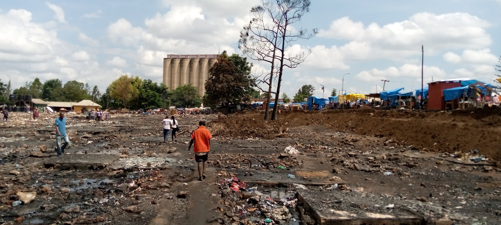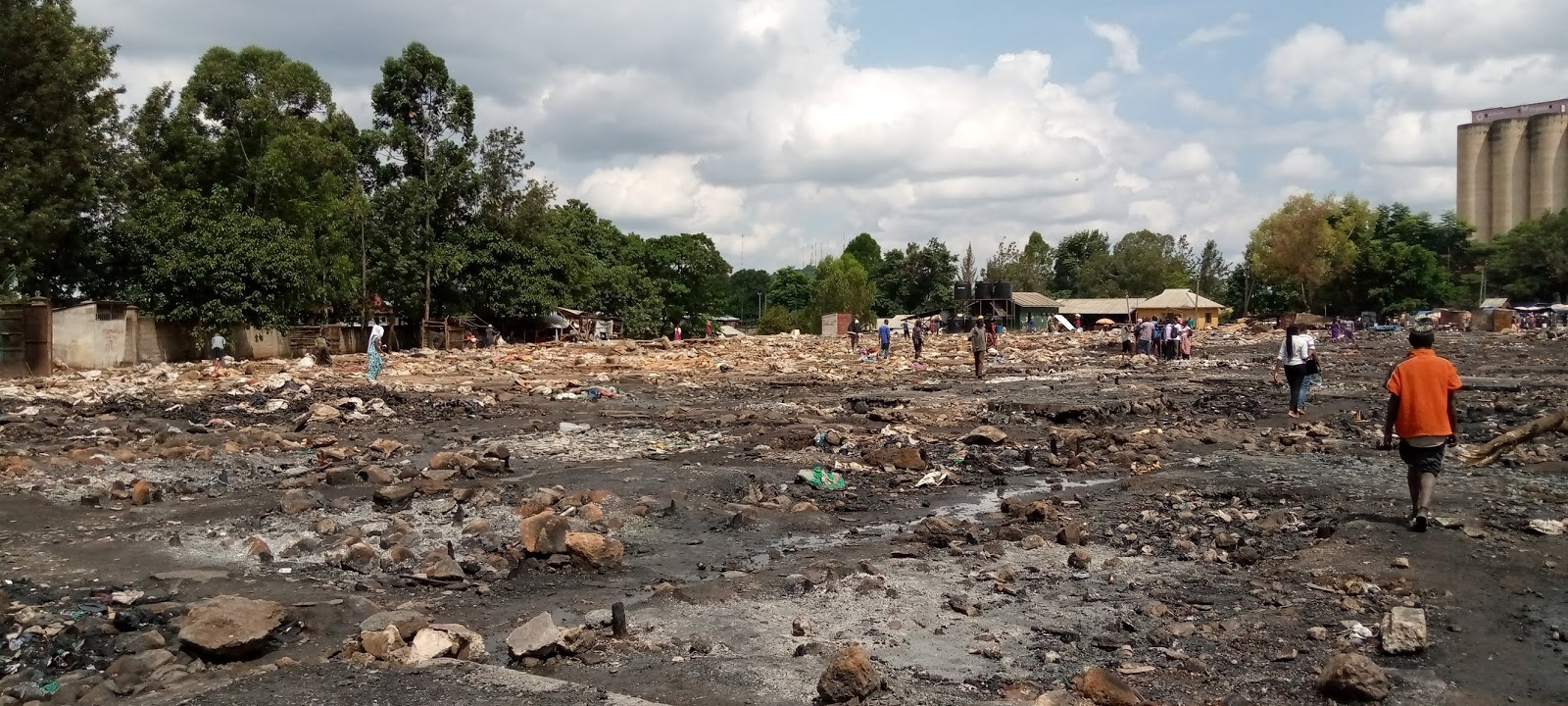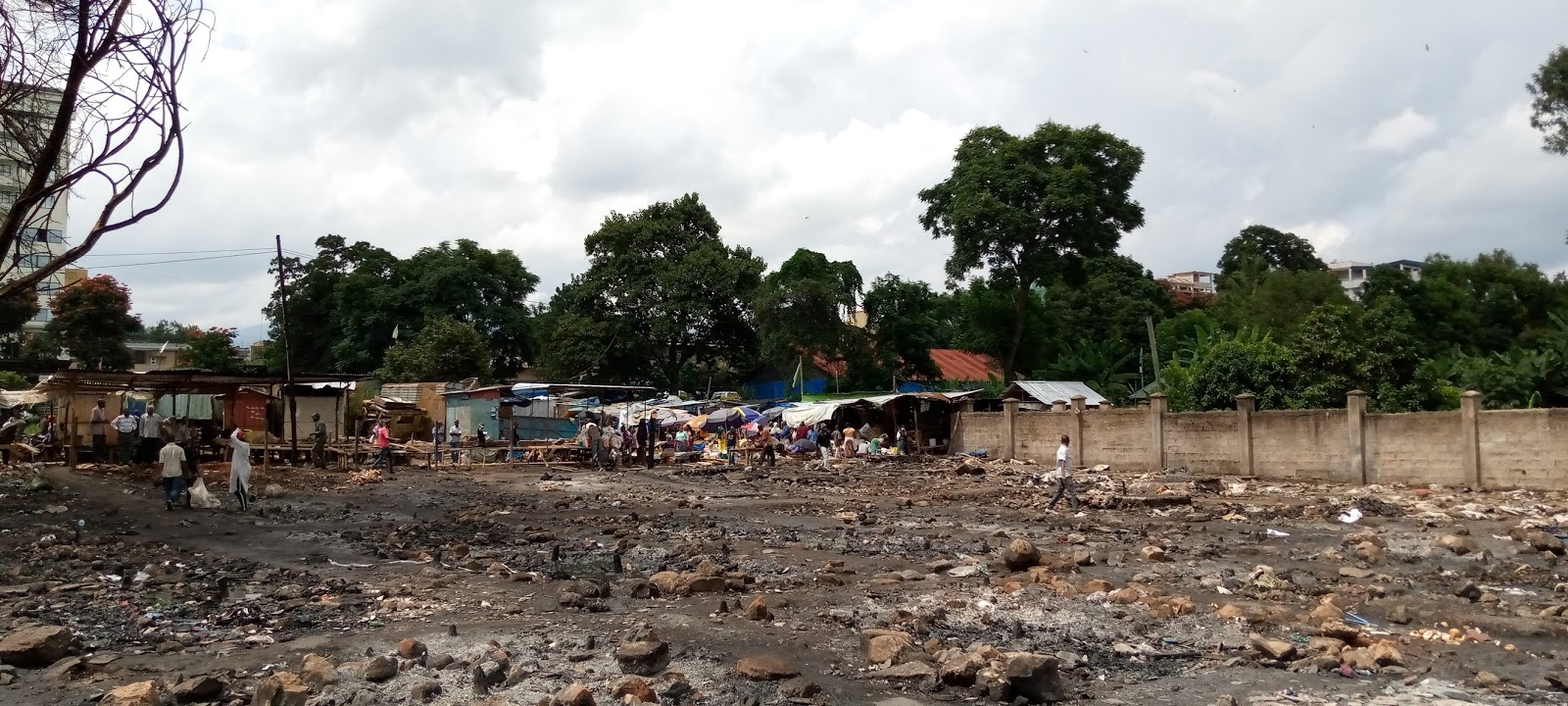| Pichani ni eneo la Magharibi la soko la Samunge lilivyoonekana jioni hii baada ya mkuu wa mkoa wa Arusha Mrisho Gambo kutoa Mabati Mia Saba ya kuanza ujenzi wa vibanda Kesho picha na Ahmed Mahmoud Arusha. |