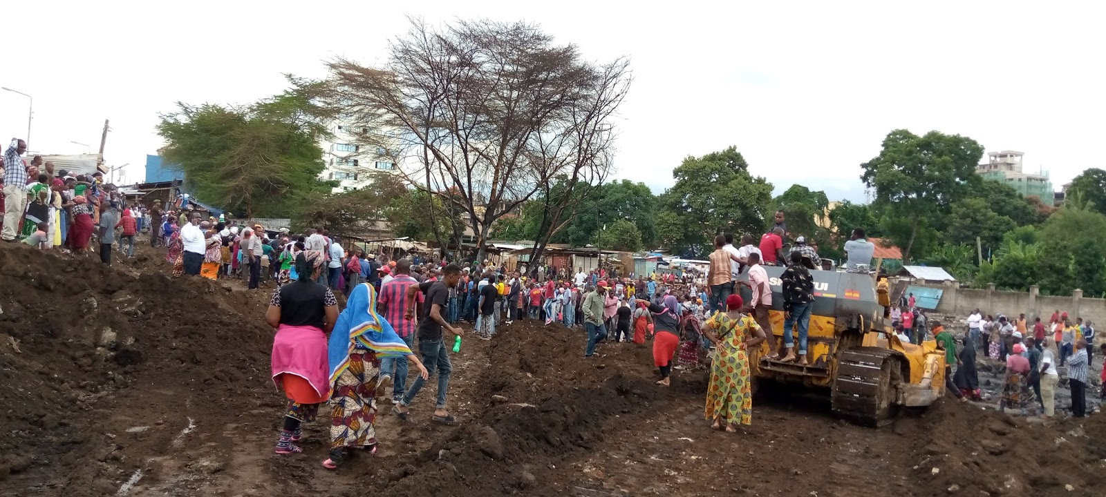 | Greda likiendelea na kazi ya kusawazisha eneo la soko hilo |