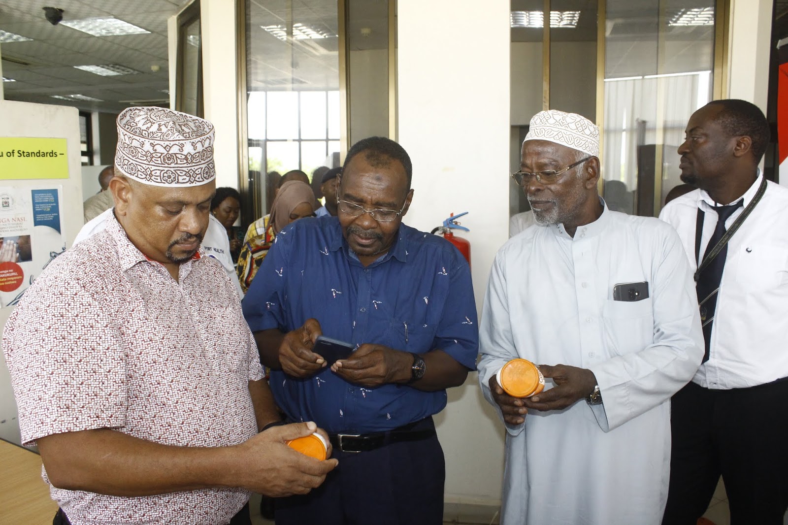 Habibu Mnyaa katikati wakiangalia bidhaa mbalimbali mpakani hapo