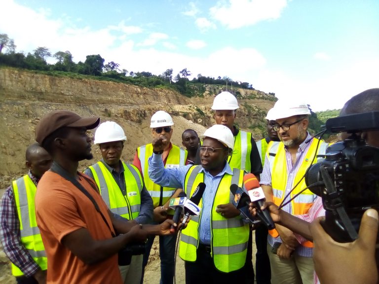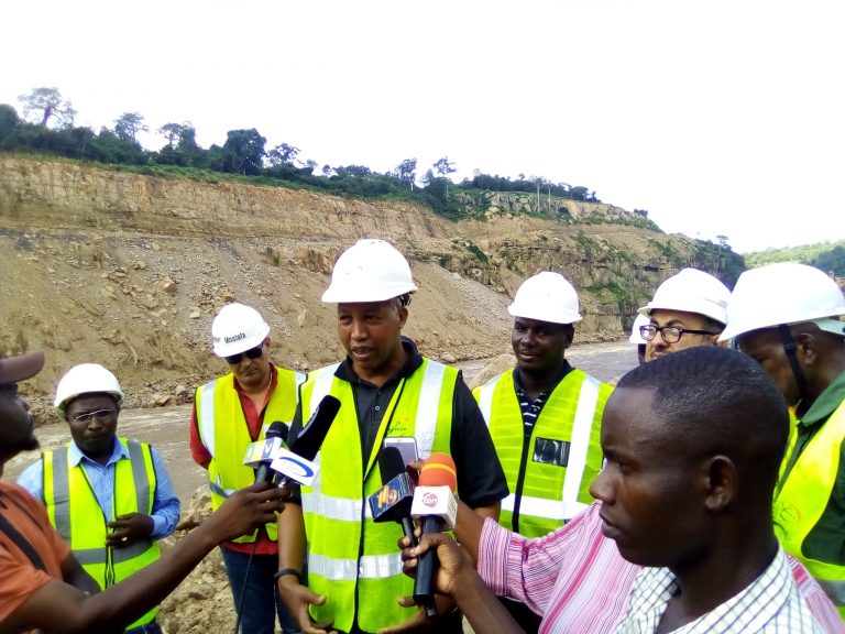 Msimamizi wa mradi wa kufua umeme wa JULIUS NYERERE MW 2115 Mhandisi Steven Manda akiongea na waandishi wa habari wakati wa ziara ya waziri wa Nishati Dkt Medard Kalemani alipokwenda kutembelea maradi huo.
