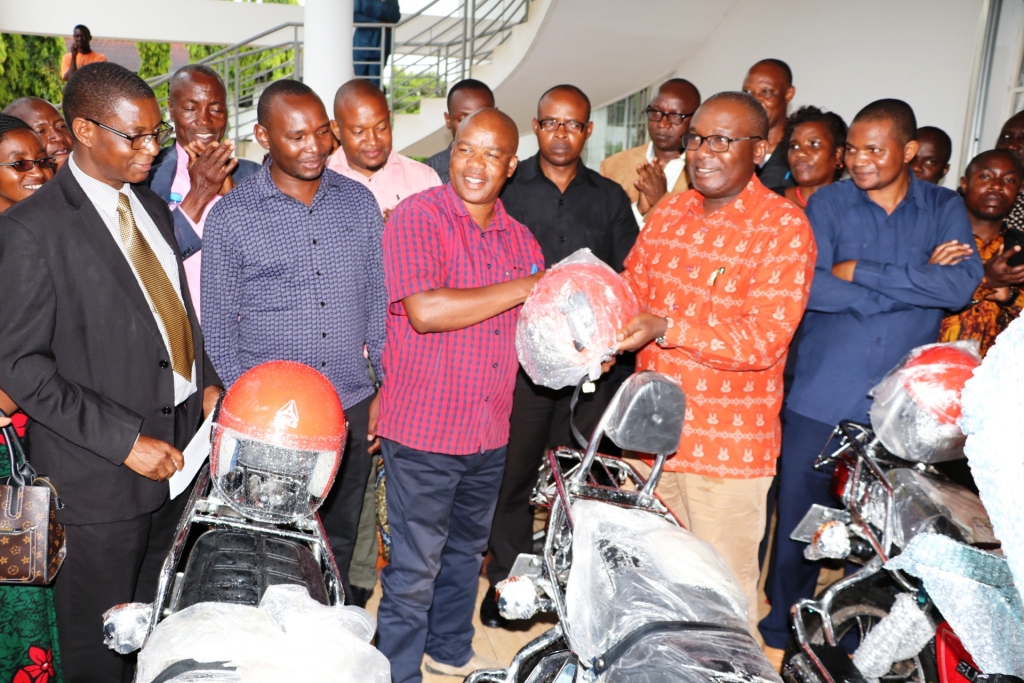 Mkuu wa Mkoa Mwanza, John Mongella akikabidhi pikipiki kwa Maafisa Tarafa Mkoa Mwanza.
