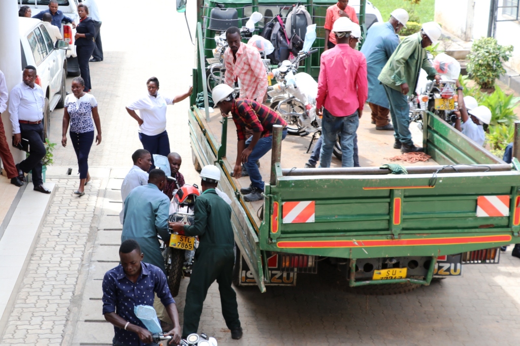 Pikipiki zilizotolewa na Rais Dkt. John Pombe Magufuli kwa Maafisa Tarafa Mkoa Mwanza.