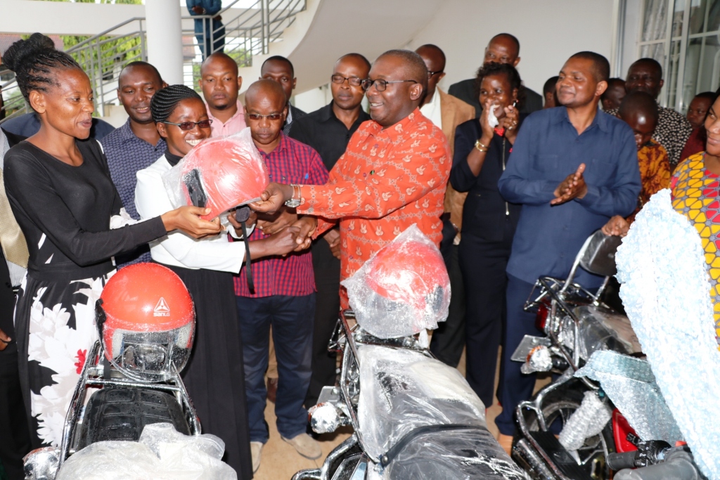 Mkuu wa Mkoa Mwanza, John Mongella akikabidhi pikipiki kwa Maafisa Tarafa Mkoa Mwanza.